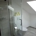 Staying at Hisa Lenart Apartment, guests have access to a sitting area appointed with a sofa set. A private bathroom features a walk-in shower and a separate toilet, plus toiletries and bath sheets.